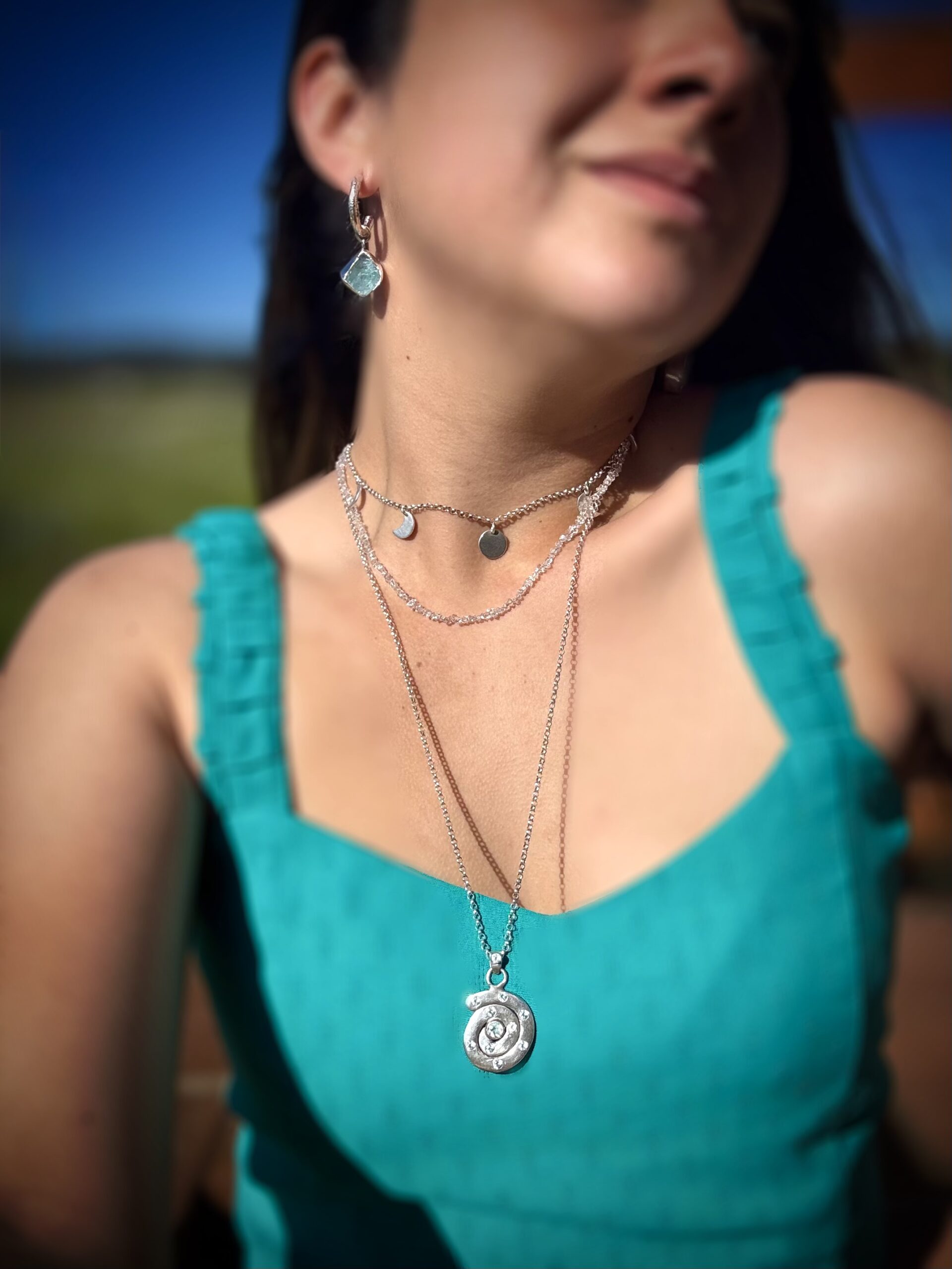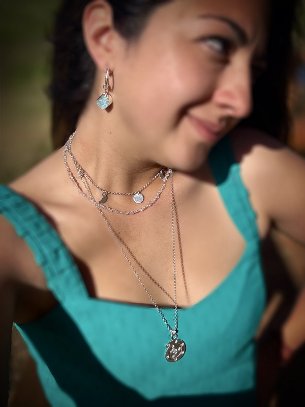 Luces, sombras, irregularidades, destellos e imperfecciones… todo en perfecta armonía, como la naturaleza misma. Estos aros con aguamarinas en bruto, forjados en unas argollas texturizadas, llena de relieves y destellos… inspirados completamente en la naturaleza, vienen recordarte que tu verdad, tu esencia… al igual que el profundo mar, y sus olas… fluyen, limpian, y liberan… pero siempre volviendo a su cause, su esencia…  porque cuando TÚ te escuchas, brillas desde un lugar donde nadie, ni nada, te puede apagar.