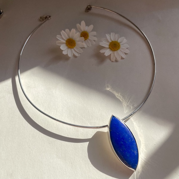 Imponente, vanguardista, HERMOSO! Es que todos los piropos quedan pequeños al lado de esta hermosura. Me encanta porque es tan original y exclusivo este collar, que definitivamente desapercibido no pasará! Imposible no sentirte la reina que eres, con esta belleza, que es una de las inspiraciones de Paz Lobos Joyería, resaltar siempre tu propia belleza! Collar hecho completamente a mano en plata 950, con una piedra lapizlásuli natural PRECIOSA. El collar mide 35 cm aprox, y posee una extensión opcional de 3 cm de argollas de plata 950. Incluye su respectiva caja para guardarlo, un paño de microfibra para limpiarla, un espejo de Paz Lobos Joyería, dos hermosos stickers con diseños propios, y tips de cuidados. Por compras sobre $70.000 te llevas completamente de regalo 5 ml de limpia joyas “Pepetools”, una marca de Estados Unidos, que es lejos lo mejor que he conocido para limpiar joyas; es natural, biodegradable, y libre de amoniaco, para que siempre tu joya luzca como nueva!