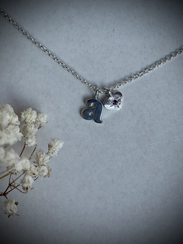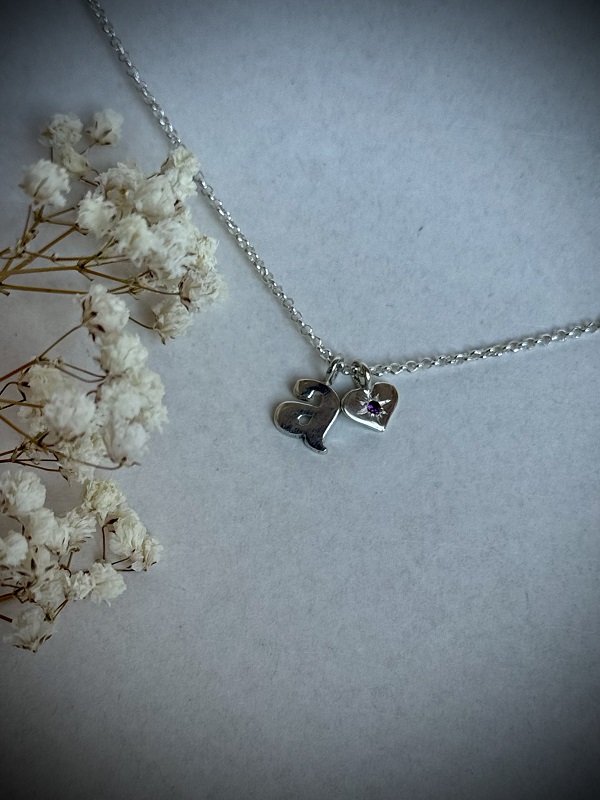 Hermoso, delicado, y minimalista collar hecho completamente a mano, en plata 950, con una piedra natural de rodolita preciosa! El collar mide de largo 45 cm aprox, además, de 3 cm de extensión opcional de argollas de plata 950. El corazón mide aprox 1 cm. Puede ser CON O SIN letra. Incluye su respectiva caja para guardarlo, un paño de microfibra para limpiarla, un espejo de Paz Lobos Joyería, dos hermosos stickers con diseños propios, y tips de cuidados.