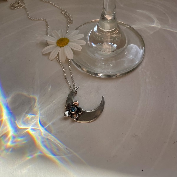 La luna… tan especial e imponente, brillante y única, siempre! sin importar si está cubierta de nubes o absolutamente despejada… es que justamente eso es lo que quise representar con este collar, la absoluta belleza de la luna, en todos sus ciclos y sin importar en cuál, siempre brilla, siempre alumbra lo que le rodea, sin importar qué exista al lado…. tiene una luz propia y única que jamás nada la apagará… y es que es eso lo que resaltar en nosotras con Paz Lobos Joyería, resaltar nuestra belleza tan única y tan propia de nosotras, nuestra belleza natural! Y jamás olvidar que no importa nuestro ciclo, siempre brillamos, y esa luz jamás se apagará… con nadie, ni nada! Está belleza está realizada 100% a mano, en plata 950, con una piedra topacio london blue, pero es que HERMOSA. Pieza única. Incluye cadena de plata 925, de 45 cm de largo, además, una extensión opcional de 3 cm de argollas de plata 950. Incluye su respectiva caja para guardarlo, un paño de microfibra para limpiarla, un espejo de Paz Lobos Joyería, dos hermosos stickers con diseños propios, y tips de cuidados. Por compras sobre $70.000 te llevas completamente de regalo 5 ml de limpia joyas “Pepetools”, una marca de Estados Unidos, que es lejos lo mejor que he conocido para limpiar joyas; es natural, biodegradable, y libre de amoniaco, para que siempre tu joya luzca como nueva!