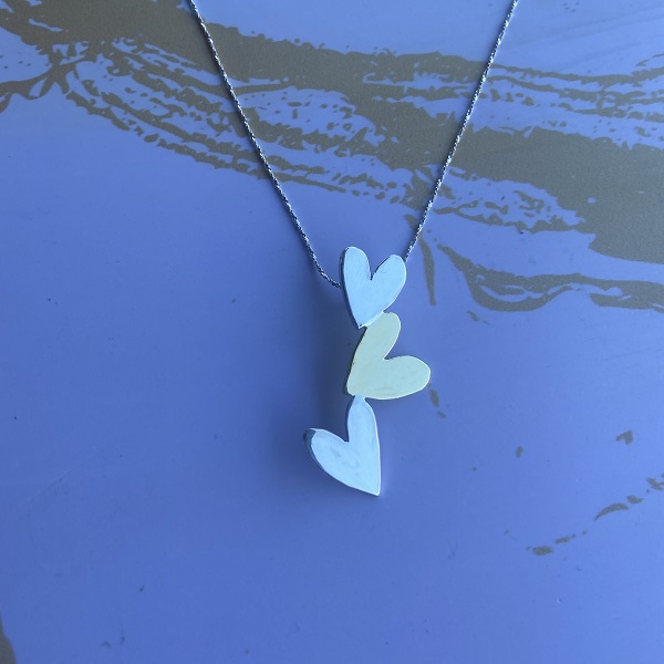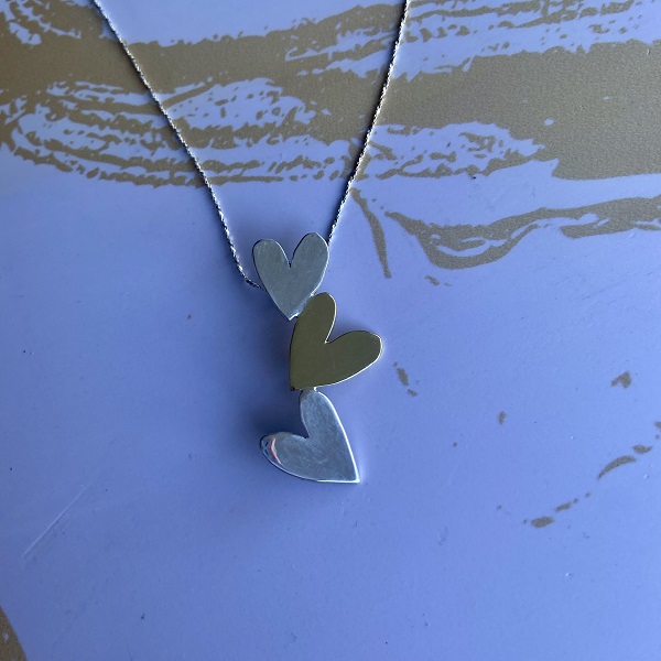 Tan único, femenino y maravilloso es este collar! Hecho totalmente a mano, con dos corazones en plata 950, y un corazón en bronce cada uno. Incluye su respectiva cadena de 45 cm, además, viene con 3 cm de argollas de plata 950 para ajustarla a tu gusto. Incluye su respectiva caja para guardarlo, un paño de microfibra para limpiarla, un espejo de Paz Lobos Joyería, dos hermosos stickers con diseños propios, y tips de cuidados. Por compras sobre $70.000 te llevas completamente de regalo 5 ml de limpia joyas “Pepetools”, una marca de Estados Unidos, que es lejos lo mejor que he conocido para limpiar joyas; es natural, biodegradable, y libre de amoniaco, para que siempre tu joya luzca como nueva!